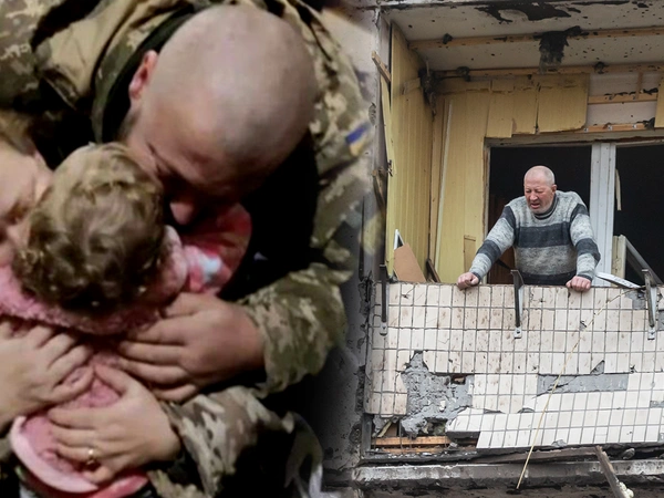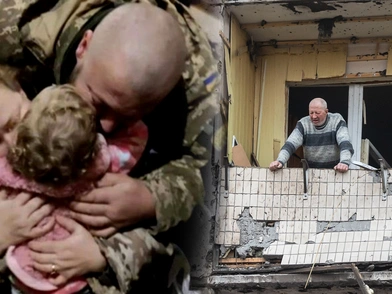 Οι γονείς σφίγγουν συγκινημένοι το παιδί στην αγκαλιά τους και το αποχαιρετούν με στόχο να «υπερασπιστούν την Ουκρανία γι' αυτήν», σύμφωνα με το σχόλιο του υπουργείου. Δεν γνωρίζουν αν και πότε θα την ξαναδούν και το μόνο που μπορούν να της προφέρουν είναι μια τελευταία οικογενειακή, τρυφερή στιγμή.