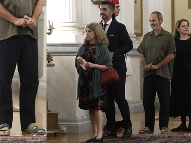 Ο ιδρυτής της Coco Mat, Παύλος Ευμορφίδης, ήταν ο άνθρωπος που «έκλεψε» την παράσταση με τα σανδάλια του στη δεξίωση που παρέθεσε χθες Δευτέρα (31.10.2022) προς τιμήν του βασιλικού ζεύγους της Ολλανδίας στο Προεδρικό Μέγαρο. Είθισται στις επίσημες δεξιώσεις οι καλεσμένοι να φορούν σμόκιν ή κάποιο επίσημο ένδυμα, όμως ο Παύλος Ευμορφίδης επέλεξε μια πιο χαλαρή εμφάνιση με πράσινο πουκάμισο, μαύρο παντελόνι και σανδάλια, με αποτέλεσμα να γίνει viral.