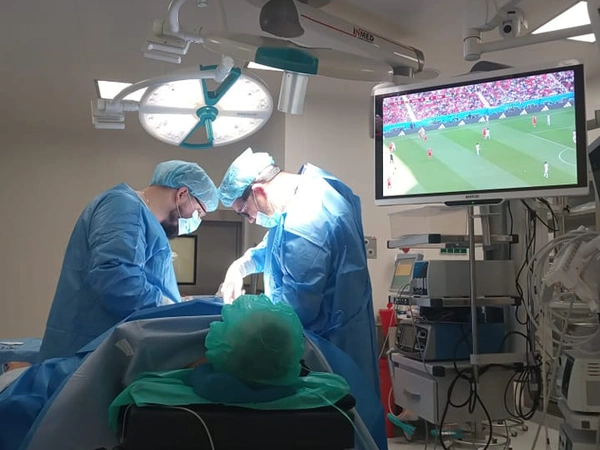 Viral έχει γίνει μια φωτογραφία στο διαδίκτυο που τραβήχτηκε κατά τη διάρκεια χειρουργικής επέμβασης στο Κιέλτσε της Πολωνίας. Μέσα στο χειρουργείο υπάρχει μία τηλεόραση που έδειχνε αγώνα της τελικής φάσης του Μουντιάλ 2022 που διεξάγεται στο Κατάρ. Στη φωτογραφία απεικονίζονται δύο γιατροί και ο ασθενής, ο οποίος παρακολουθούσε το παιχνίδι της Ουαλίας με το Ιράν, ενώ βρισκόταν υπό επισκληρίδιο αναισθησία.