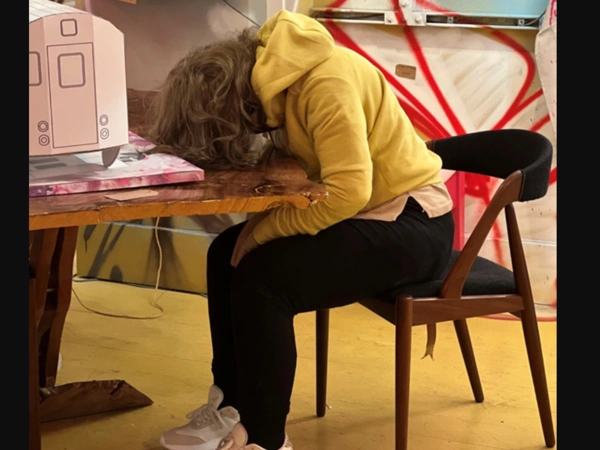 Όμως το «άτομο» αποδείχθηκε ότι ήταν η «Kristina», ένα γλυπτό που φιλοτέχνησε φέτος ο καλλιτέχνης Mark Jenkins και απεικονίζει μια γυναίκα που κάθεται σε μια καρέκλα λιπόθυμη με το κεφάλι της πάνω σε ένα γραφείο. Το έργο είχε παραγγελθεί από τον ιδιοκτήτη της γκαλερί και πρώην ατζέντη του Banksy, Steve Lazarides.
