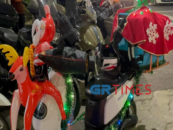Ευφάνταστες βιτρίνες κλέβουν τις εντυπώσεις, λαμπιόνια είναι τοποθετημένα σε κεντρικούς δρόμους της Θεσσαλονίκης, ωστόσο την παράσταση «κλέβει» ένας διανομέας τροφίμων, ο οποίος «έντυσε» το μηχανάκι του με λαμπιόνια και χριστουγεννιάτικα στολίδια.