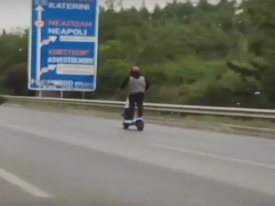 Viral έχει γίνει ένας οδηγός στη Θεσσαλονίκη που πηγαίνει... πατητός στον περιφερειακό, οδηγώντας ηλεκτρικό πατίνι! Στο βίντεο που ανέβηκε το TikTok φαίνεται να πηγαίνει με την ιλιγγιώδη -για το μέσο- ταχύτητα, στη δεξιά λωρίδα με μοναδικό μέσο προστασίας ένα κράνος. Επιβάτες αυτοκινήτου που κινείται δίπλα του τράβηξαν το βίντεο δείχνοντας παράλληλα το κοντέρ του οχήματός τους τους που έχει ξεπεράσει τα 100 χλμ και ακόμη δεν τον έχουν πλησιάσει, που σημαίνει πως κινείται με ακόμη μεγαλύτερη ταχύτητα.