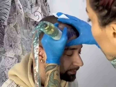 Έτσι αφού το... καλοσκέφτηκε, πήγε στο τατουατζίδικο της γειτονιάς του και είπε στην tattoo artist να του χτυπήσει μια φράντζα! Πιθανότατα θα αναρωτήθηκε πως αφού πετυχαίνει στις γυναίκες που κάνουν μόνιμο τατουάζ φρυδιών γιατί να μην πετύχει και το μόνιμο τατουάζ φράντζας. Μπορεί και να μην το σκέφτηκε. Συνεχίζουμε.
