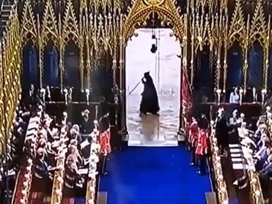 Τον γύρο του διαδικτύου έκανε μία φιγούρα με μανδύα που έτρεχε μέσα στο Αβαείο του Ουεστμίνστερ κατά τη διάρκεια της στέψης του βασιλιά Καρόλου στη Μεγάλη Βρετανία.