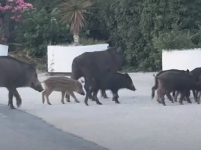 Μία... παρέα αγριογούρουνων εθεάθη να κάνει παρέλαση σε κεντρικό δρόμο της Θέρμης, στην ανατολική Θεσσαλονίκη. Οι αγριόχοιροι, ενήλικοι και μωρά, πέρασαν κεντρικό δρόμο της περιοχής όπως φαίνεται και σε βίντεο που δημοσιεύτηκε στο διαδίκτυο.