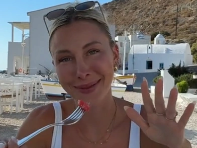 «Είμαστε στην Ελλάδα, πριν ήμουν στην Ιταλία, όπου έπαθα τροφική δηλητηρίαση και δεν κατάφερα να δοκιμάσω αληθινή ντομάτα ούτε στην Ιταλία, ούτε μέχρι τώρα και στην Ελλάδα», ακούγεται να λέει η Μάρτα από ταβέρνα στη Μήλο.