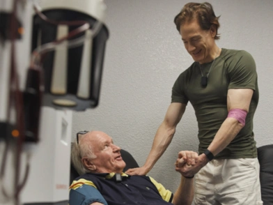 «Η ταχύτητα γήρανσης του πατέρα μου επιβραδύνθηκε κατά 25 χρόνια μετά τη λήψη ενός λίτρου από το πλάσμα μου», είπε ο Bryan Johnson και έγραψε στο Twitter: «Το σούπερ αίμα μου μείωσε την ηλικία του μπαμπά μου κατά 25 χρόνια».