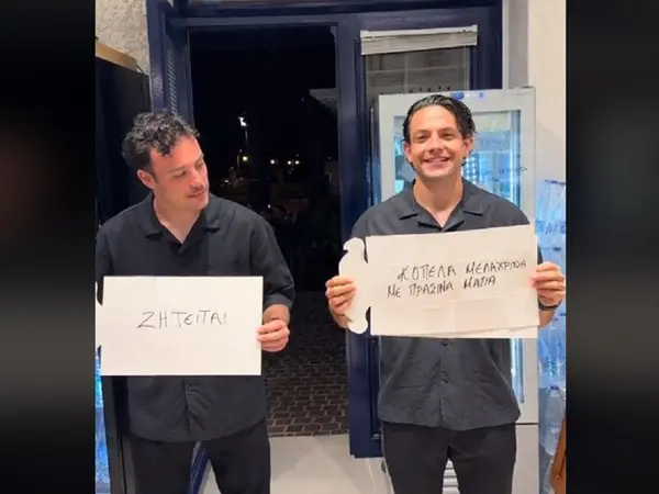 Με το βίντεο να κατακτά το Tiktok, επέστρεψαν με ένα δεύτερο πιο... συμπεριληπτικό, όπου έγραφαν «Ζητείται κοπέλα μελαχρινή με πράσινα μάτια» και «Ζητείται κοπέλα κοκκινομάλλα με μελί μάτια», πριν μαζέψουν πάλι και ζητήσουν...«ό,τι είναι» τελοσπάντων.