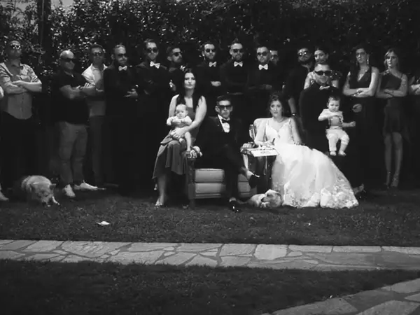 Πρωταγωνιστές στο viral βίντεο ήταν το νεόνυμφο ζευγάρι στα Τρίκαλα, όλοι οι καλεσμένοι, μικροί, μεγάλοι, βρέφη και σκυλιά, με τη λήψη να είναι μακρινή και ασπρόμαυρη, για να τους συμπεριλάβει όλους στο πλάνο.