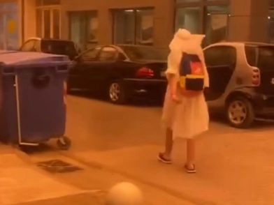 Εκμεταλλευόμενος αυτό, ένας νεαρός στην Καλαμάτα φόρεσε την κελεμπία του και βγήκε στους δρόμους καθώς έπρεπε να εναρμονιστεί με το σκηνικό Σαχάρας που επικρατούσε.