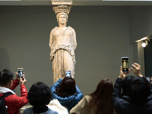Βίντεο τεχνητής νοημοσύνης δείχνει μια καρυάτιδα να φεύγει από το Βρετανικό Μουσείο στο Λονδίνο και να στέκεται ξανά στο Μουσείο της Ακρόπολης,