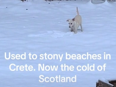 Από τους δρόμους της Κρήτης με τον ζεστό καιρό, ο σκύλος βρέθηκε στην χιονισμένη Σκωτία και φαίνεται πως το απολαμβάνει. Η Victoria Donnelly μοιράστηκε στο TikTok βίντεο με την αντίδραση του σκύλου που διασώθηκε, όταν είδε για πρώτη φορά χιόνια.