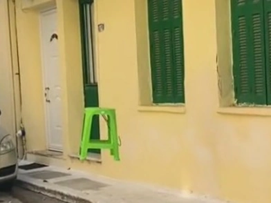 Όμως ο κάτοικος του νησιού αποφάσισε να... κρεμάσει από το μπαλκόνι το λαχανί σκαμπό για να μην του το πάρουν και κρατώντας παράλληλα τη θέση για το πάρκινγκ.