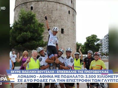 Ο λόγος για τη Βασιλική Βουτζαλή και τον Στέφεν Στράιχ από τη Γερμανία, που μένει τα τελευταία 20 χρόνια στην Ελλάδα, με την πρωτοβουλία, όπως λέει η αθλήτρια, να έχει ξεκινήσει από πέρσι όπου μαζί με 5 ποδηλάτες ξεκίνησαν από το Βρετανικό Μουσείο με τελικό προορισμό το Μουσείο της Ακρόπολης.