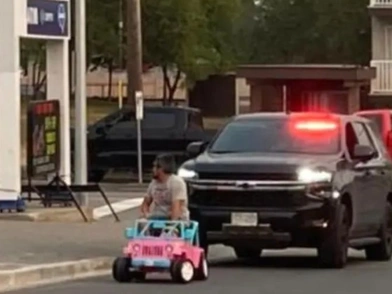 Στην Βρετανική Κολομβία ένας άνδρας αποφάσισε - σαν άλλος Μπισμπίκης να βγει στους δρόμους - προκαλώντας έναν ροζ πανικό. Αποφάσισε, λοιπόν, να οδηγήσει ένα μικροσκοπικό αυτοκινητάκι Barbie, φτιαγμένο για παιδιά 3-7 ετών, και ξεκίνησε για να πάει να πάρει μια γρανίτα.