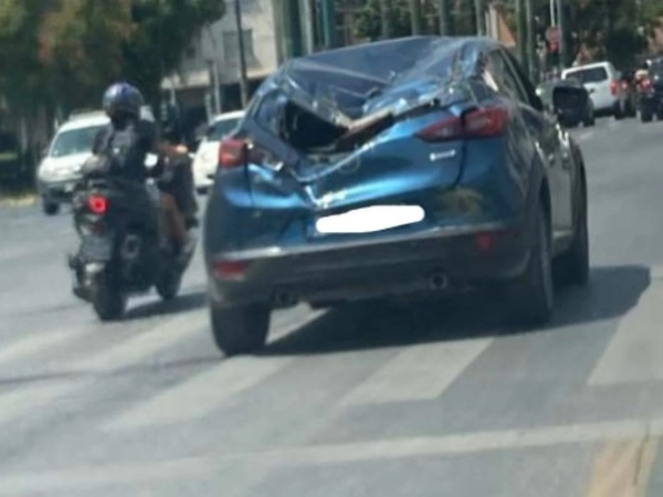 Το αυτοκίνητο είναι κομματιασμένο, όπως φαίνεται στις σχετικές φωτογραφίες που «ανέβηκαν» στο Instagram, ωστόσο αυτό δεν απέτρεψε τον ή την οδηγό του να κυκλοφορήσει στην Αθήνα και να γίνει ατραξιόν.