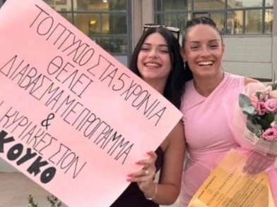 Ένα μπαρ στην Αθήνα κερνάει ποτά την παρέα μιας κοπέλας, η οποία πήρε το πτυχίο της.