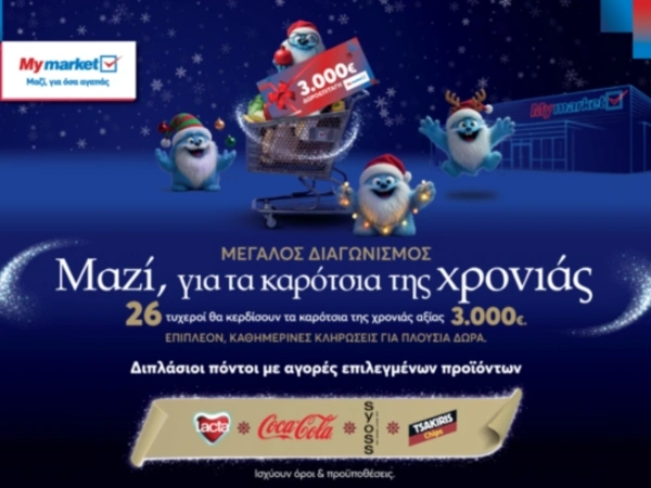 Ο γιορτινός διαγωνισμός του My Market μοιράζει πλούσια δώρα συνολικής αξίας 85.200€ και υπόσχεται να προσθέσει σε κάθε σπίτι, λίγη ακόμα από τη μαγεία των γιορτών! Όλα αυτά αποτυπώνονται πολύ όμορφα και στην ταινία που δημιούργησαν για τον γιορτινό διαγωνισμό τους τα My market με κεντρικούς ήρωες 4 αξιαγάπητα πλάσματα, τα οποία μέσα σε ένα κατάστημα γεμίζουν τα καρότσια της χρονιάς.