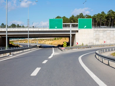 Υπάρχουν προειδοποιήσεις προς τους οδηγούς ώστε να επιβραδύνουν την ταχύτητα τους. Η μια είναι για αλλαγή στα 48 χιλιόμετρα, μια άλλη πριν την έξοδο για 32 χιλιόμετρα και άλλη μια αντίστοιχη κάτω από την πινακίδα της εξόδου. Υπάρχει επίσης και μια πινακίδα στοπ και άλλες, όπως ανακλαστικές σημάνσεις στα τσιμεντένια φράγματα.