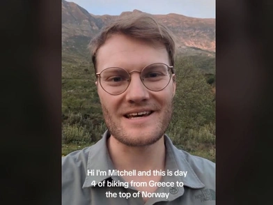 Στο πρώτο βίντεο που ανέβασε ο Μίτσελ στο TikTok, πριν από δύο ημέρες, ενημερώνει το κοινό πως ξεκινάει το ταξίδι του από την Ελλάδα στην κορυφή της Νορβηγίας, με το πρώτο ορόσημον να βρίσκεται στην Αθήνα και στα προάστιά της.