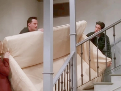 Το ζήτημα, παρότι μοιάζει πολύ επιστημονικό για να ασχοληθεί το ευρύ κοινό, έχει τραβήξει την προσοχή λόγω της δημοφιλούς σειράς «Φιλαράκια», όπου ο Ρος Γκέλερ επιχειρεί να καθοδηγήσει τους φίλους του να κάνουν ακριβώς αυτό, να ανεβάσουν έναν καναπέ από μία σκάλα.