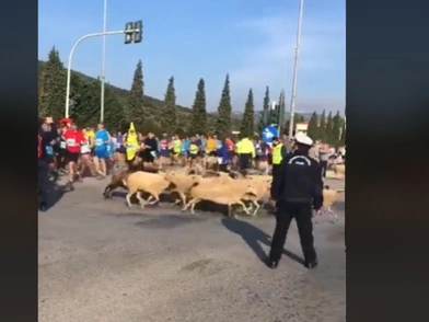 Όπως φαίνεται και στα πλάνα που κυκλοφορούν στο TikTok από το περιστατικό, τα ζώα βρέθηκαν δίπλα στους δρομείς και στη συνέχεια στην απέναντι λωρίδα κυκλοφορίας.