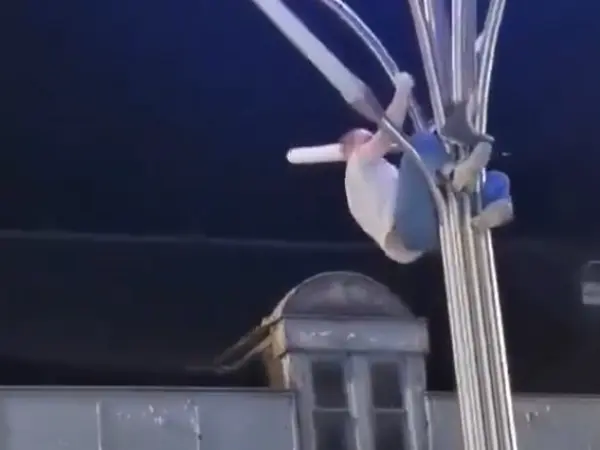 Στη συνέχεια τσούλησε γρήγορα κάτω και χειροκροτήθηκε από τους περαστικούς.