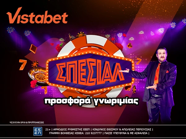 Στη Vistabet η διασκέδαση είναι… ρεζερβέ κι εσύ κάθεσαι πρώτο τραπέζι, καθώς ξεκινάς το παιχνίδι σου με Σπέσιαλ Προσφορά* Γνωριμίας!