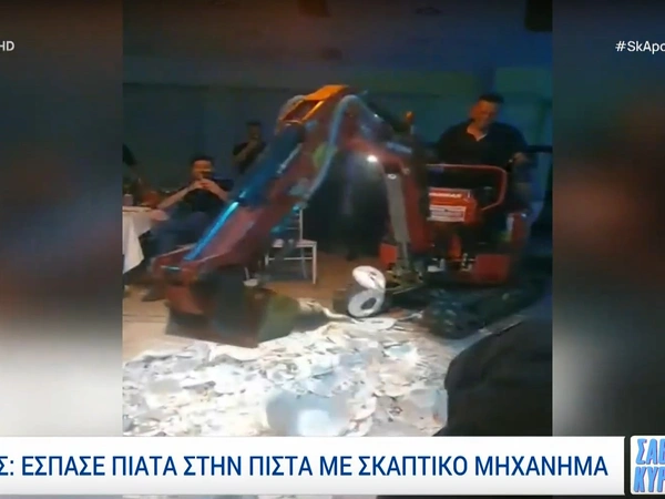 Μία παρέα από τη Σύρο έφτασε τη διασκέδαση μέχρι τέλους, χρησιμοποιώντας σκαπτικό μηχάνημα για να σπάσει πιάτα!
