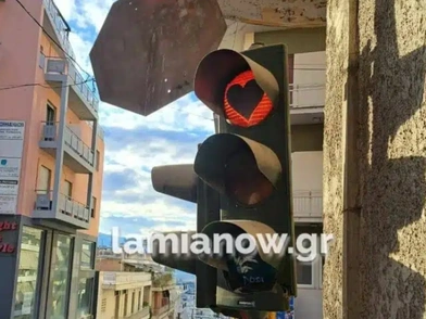 Όσοι κινούνται από το πρωί στην πόλη, παρατήρησαν πως οι κόκκινοι σηματοδότες έχουν πάρει το σχήμα της καρδιάς.