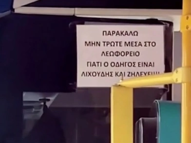 Ο οδηγός του λεωφορείου στη Θεσσαλονίκη, ειδικότερα, ζητάει από τους επιβάτες να μην τρώνε μέσα στο μέσο, όχι επειδή μπορεί να το «βρωμίσουν», αλλά επειδή... ζηλεύει!