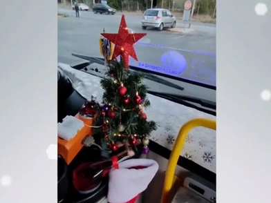Στολίδια, χριστουγεννιάτικες κόκκινες κάλτσες και ένα μικρό έλατο έκαναν γιορτινό το λεωφορείο.