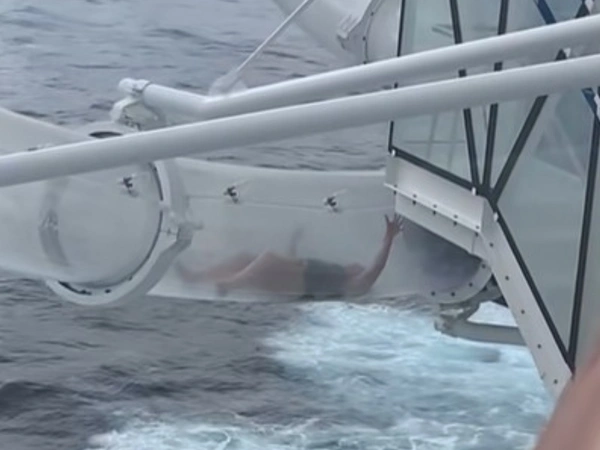 Η επιβάτιδα προσπαθούσε απεγνωσμένα να κινηθεί μέσα στον σωλήνα, χωρίς αποτέλεσμα, ενώ το πλοίο συνέχιζε την πορεία του εν μέσω κακοκαιρίας. Το περιστατικό καταγράφηκε σε βίντεο από άλλον επιβάτη και γρήγορα έγινε viral στα social media, με δεκάδες χρήστες να σχολιάζουν την τρομακτική εμπειρία. «Αρχίζω να παθαίνω κρίση πανικού μόνο που το βλέπω», έγραψε ένας χρήστης, ενώ άλλος σημείωσε: «Η κλειστοφοβία μου δεν θα μου επέτρεπε ποτέ να μπω σε τέτοια θέση».