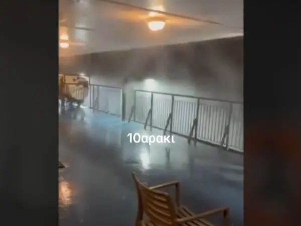 Στο βίντεο καταγράφεται η σφοδρότητα με την οποία τα κύματα «χτυπούν» το πλοίο. Ο χρήστης που ανήρτησε το βίντεο διευκρίνισε πως το καράβι είναι κλειστού τύπου και προστατεύεται από τον αέρα.