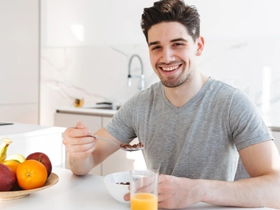 Πολλοί άνθρωποι δεν έχουν όρεξη να φάνε αμέσως μόλις ξυπνήσουν. Εάν ανήκετε σε αυτή την κατηγορία, προσπαθήστε να δοκιμάσετε τουλάχιστον ένα μικρό σνακ, όπως μια χούφτα ξηρούς καρπούς ή λίγα φρούτα. Εάν πάλι δεν τρώτε πρωινό για να μην πάρετε κιλά, κάνετε τεράστιο λάθος! Η πεποίθηση ότι η παράλειψη του πρωινού σας γλιτώνει από θερμίδες και βοηθά στην απώλεια βάρους είναι ένας από τους μεγαλύτερους διατροφικούς μύθους. Μια μελέτη που έγινε τον Φεβρουαρίο του 2020 και δημοσιεύτηκε στο περιοδικό Journal of Clinical Endocrinology & Metabolism διαπίστωσε ότι οι συμμετέχοντες που έτρωγαν ένα μεγάλο πρωινό (αντί για ένα μεγάλο δείπνο) έκαψαν σχεδόν διπλάσιες θερμίδες όλη την ημέρα. Επίσης, σύμφωνα με τα αποτελέσματα της ίδιας μελέτης, οι συμμετέχοντες που έτρωγαν πρωινό με λίγες θερμίδες ανέφεραν αυξημένα αισθήματα πείνας, ειδικά για γλυκά.
