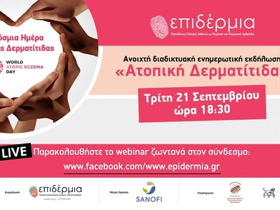Στην ικανοποίηση αυτής της ανάγκης για αύξηση της σωστής ενημέρωσης των ασθενών και του περιβάλλοντός τους, επιδιώκει να συνεισφέρει ο Σύλλογος «Επιδέρμια» μέσω της καμπάνιας. Αναλυτικότερα, την Τρίτη 21 Σεπτεμβρίου ο σύλλογος διοργανώνει ανοικτή ενημερωτική διαδικτυακή εκδήλωση (webinar) με θέμα την Ατοπική Δερματίτιδα και τη συμμετοχή εκπροσώπων ασθενών και διακεκριμένων μελών της ιατρικής κοινότητας. Αρχικά, ο Ρένος Βαμβακούσης, Πρόεδρος Πανελλήνιου Συλλόγου «Επιδέρμια», θα μεταφέρει στους συμμετέχοντες τα μηνύματα της φετινής Παγκόσμιας Ημέρας, ενώ η Σοφία Σαμαρά, μέλος του Συλλόγου, θα παρουσιάσει τις ιδιαιτερότητες της ζωής με τη νόσο. Την επιστημονική τους γνώση και κλινική εμπειρία θα καταθέσουν οι κεντρικοί ομιλητές, Μαρίνα Παπουτσάκη MD, PhD, Δερματολόγος – Αφροδισιολόγος, Διευθύντρια Α’ Πανεπιστημιακής Κλινικής, Νοσοκομείο Δερματολογικών Παθήσεων «Ανδρέας Συγγρός» και Σταμάτης Γρηγορίου MD, PhD, Επίκουρος Καθηγητής Δερματολογίας - Αφροδισιολογίας Ιατρικής Σχολής ΕΚΠΑ. Οι ενδιαφερόμενοι μπορούν να παρακολουθήσουν ζωντανά το webinar και να απευθύνουν τις ερωτήσεις τους προς τους ομιλητές εδώ.