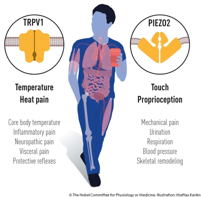 Οι «επαναστατικές ανακαλύψεις» τους «επέτρεψαν να κατανοήσουμε πώς η ζέστη, το κρύο και η μηχανική δύναμη μπορούν να προκαλέσουν τα νευρικά ερεθίσματα που μας επιτρέπουν να αντιλαμβανόμαστε και να προσαρμοζόμαστε στον κόσμο γύρω μας», ανακοίνωσε η επιτροπή του Νόμπελ στη Στοκχόλμη. «Η γνώση αυτή χρησιμοποιείται για να αναπτυχθούν θεραπείες για ένα ευρύ φάσμα ασθενειών, περιλαμβανομένου του χρόνιου πόνου».