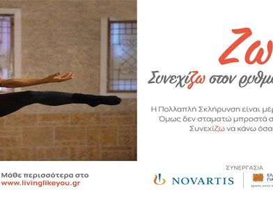 Ο κος Αναστάσιος Ωρολογάς, Πρόεδρος της Ελληνικής Εταιρείας για τη Σκλήρυνση κατά Πλάκας, Ομοτ. Καθηγητής Νευρολογίας ΑΠΘ τόνισε ότι «η καμπάνια «Ζω – Συνεχίζω στον ρυθμό της ζωής!» ενσαρκώνει τις βαθύτερες σκέψεις των ασθενών με Πολλαπλή Σκλήρυνση και με θετικό τρόπο προσπαθεί να τους εμψυχώσει ώστε να αντιμετωπίσουν τη νόσο τους και να συνεχίσουν να έχουν μια ποιοτική και δραστήρια ζωή. Χαιρόμαστε που είμαστε κοινωνοί με την Novartis Hellas σε ένα τόσο σημαντικό μήνυμα!»