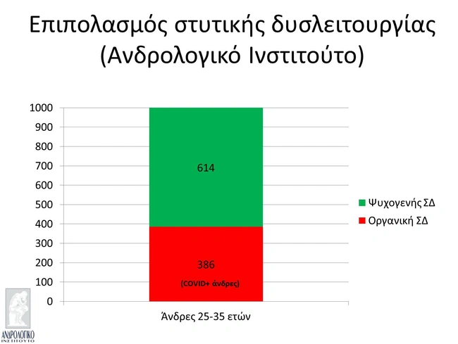 Η ομάδα των νέων ανδρών περιλάμβανε 1000 περιστατικά στην διάρκεια των δυο ετών με σύμπτωμα την ΣΔ. Οι 600 από αυτούς δεν είχαν καμιά φανερή αιτία εκτός από το άγχος αποτυχίας, οι υπόλοιποι 400 όμως είχαν έναν επιπλέον παράγοντα κινδύνου: τη νόσηση από κορονοϊό. Οι νοσήσαντες ήταν κυρίως ανεμβολίαστοι, οι οποίοι έχει αποδειχθεί ότι έχουν 20 φορές περισσότερες πιθανότητες να προσβληθούν από τον ιό σε σχέση με τους εμβολιασμένους.