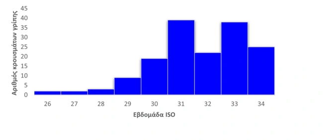 Ο αριθμός των δηλωθέντων κρουσμάτων ήταν σχεδόν πέντε φορές υψηλότερος από τον αριθμό των κρουσμάτων που δηλώθηκαν την ίδια περίοδο το 2019 μέσω του Συστήματος Υποχρεωτικής Δήλωσης Νοσημάτων (37 κρούσματα γρίπης), ενώ δεν δηλώθηκε κανένα κρούσμα γρίπης το χρονικό διάστημα 2020-2021. Από τα δηλωθέντα κρούσματα γρίπης, 160 ήταν Έλληνες (92%) και 14 αλλοδαποί (8%) από εννέα χώρες, όλες από το Βόρειο Ημισφαίριο. Η διάμεση ηλικία των κρουσμάτων ήταν 22 έτη (εύρος: 1-75 έτη), ενώ 10 κρούσματα ήταν παιδιά ηλικίας ≤12 ετών. Το 58% των κρουσμάτων ήταν άνδρες.