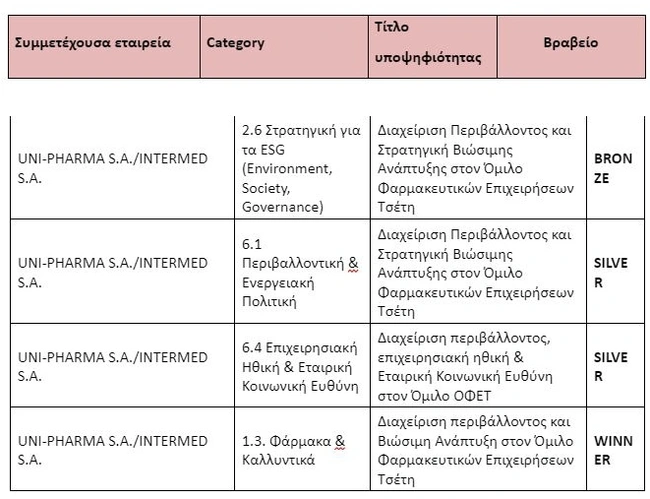 Αναλυτικά, τα βραβεία που έλαβαν οι δύο φαρμακοβιομηχανίες του Ομίλου Φαρμακευτικών Επιχειρήσεων Τσέτη είναι τα παρακάτω: