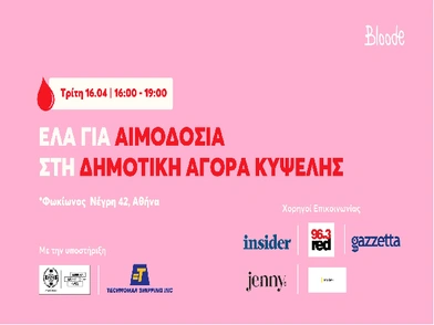 Ελάτε να δώσετε το πολύτιμο δώρο της ζωής από τις 16:00 έως τις 19:00 και να κάνουμε μαζί τη διαφορά!