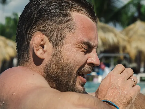 Το αυτί γίνεται κόκκινο αρχικά, λόγω του αιματώματος και πρήζεται, ενώ ο ασθενής αντιμετωπίζει προβλήματα ακοής, με εμβοές, όπως επίσης και διαταραχές στην όραση, και πονοκέφαλο.
