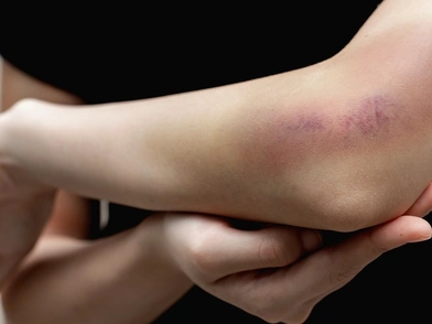 - Κόκκινα ή μωβ σημάδια στο δέρμα