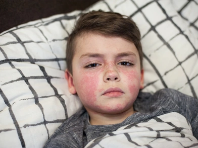 Εμφανίζονται κοκκινίλες στις μασχάλες, το στήθος, την κοιλιά, και πάνω από τα μπούτια, ώσπου μετά ξεκινάει να εξαπλώνεται περισσότερο κάνοντας το δέρμα πολύ τραχύ. Το εξάνθημα μπορεί να εξαπλωθεί μέχρι και στα χέρια, τα πόδια και το πρόσωπο του παιδιού.